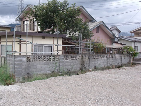 柿をとるためにパイプを組んでいたとのことですが、柿もとらなくなり、家の前に建っていた建物が撤去されたので見栄えをよくしたいという思いからご相談を頂きました。現在のブロック塀を一部撤去し、フェンスを設置するということで、シンプルなデザインのフェンスをご提案しました。周りの雰囲気や既存の塀から浮くこと無く仕上がったと思います。
